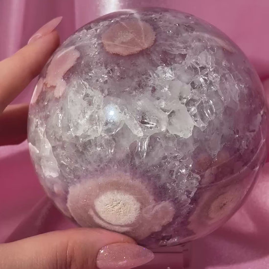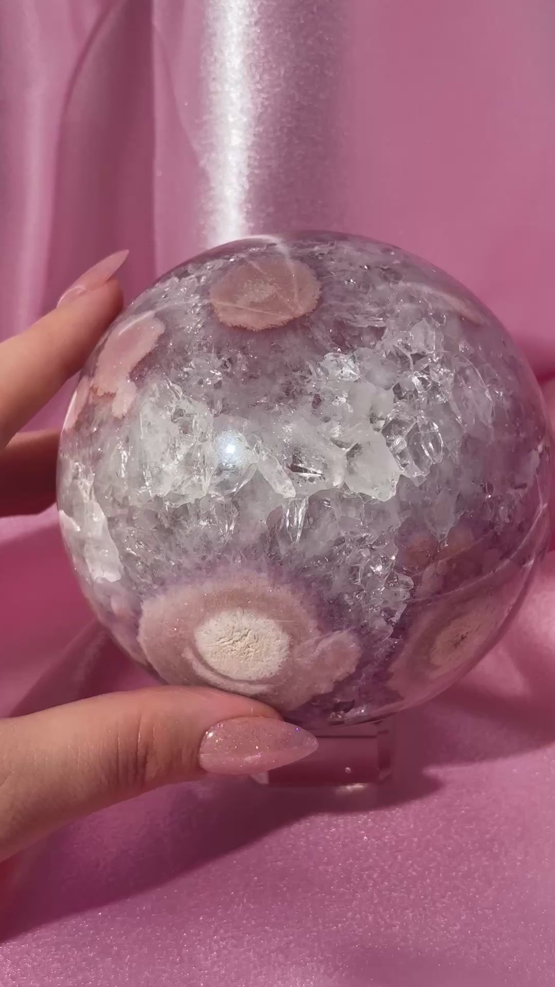 Statement Brazilian pink amethyst x flower agate sphere with sparkly quartz