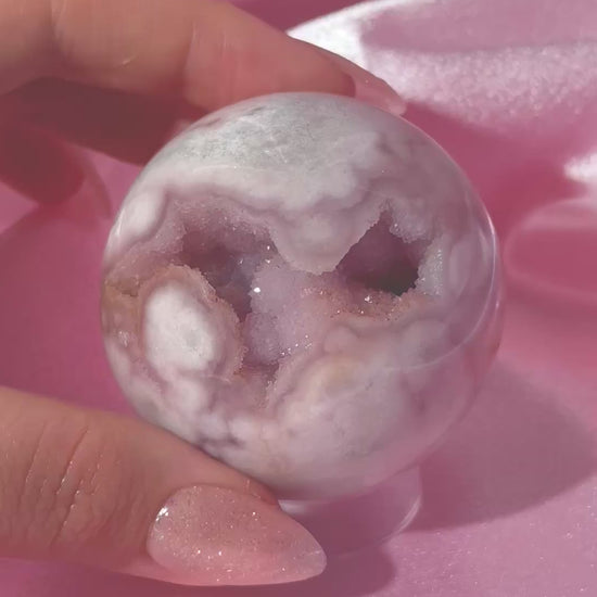 Brazilian pink amethyst x flower agate sphere