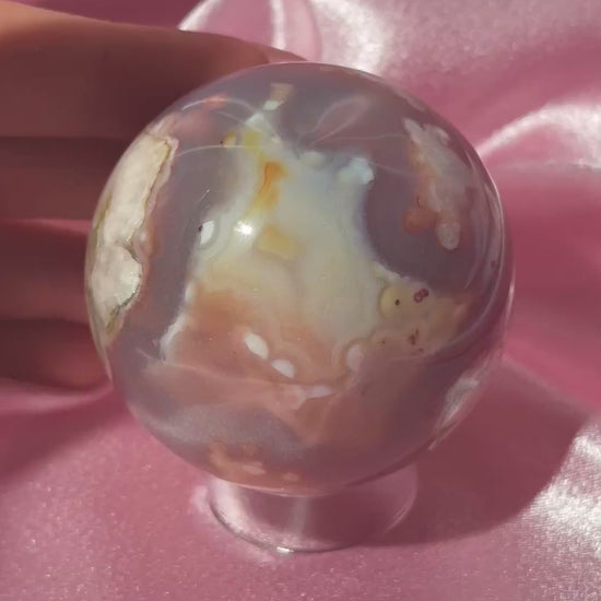 Colorful flower agate sphere from Madagascar *imperfect polish