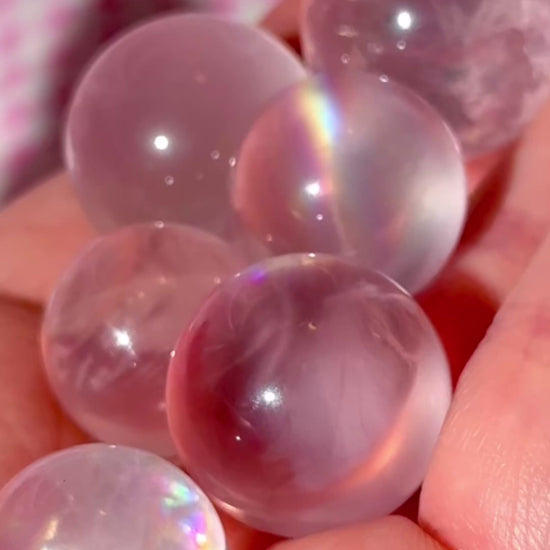 Intuitive pick! - mini rainbow rose quartz spheres (smaller size)